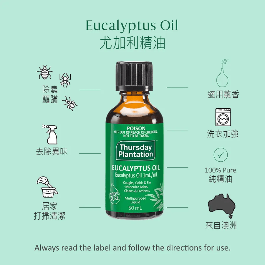 尤加利精油是一種多功能的家事精油,可以幫助清潔、去味、 驅蟎等等